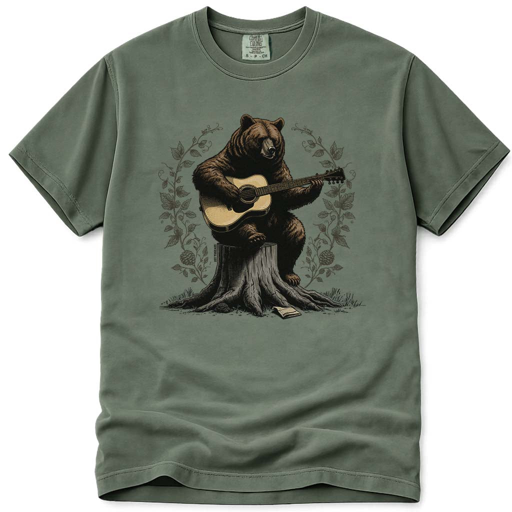Somewhere deep in the woods, a bear picked up a guitar and never looked back. This Musical Bear tee blends wildlife charm with a laid-back music vibe, perfect for campfire nights or lazy Sunday mornings. Explore our bear shirts collection for more woodland designs, and check out our guitar tees for a musical edge.