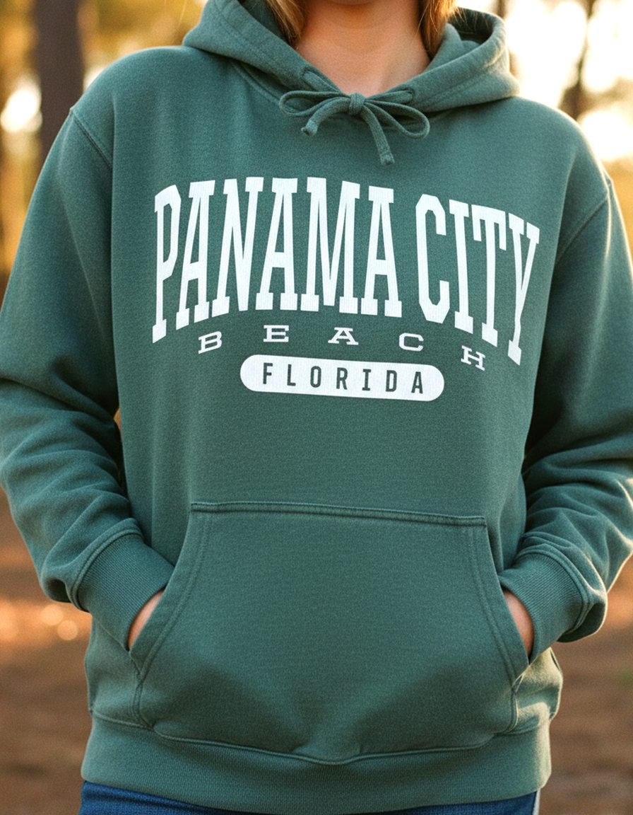 You might also like our Destin hoodie or our Pensacola Beach sweatshirt for more Panhandle coast coverage. The arched college lettering on this one captures that classic beach town energy PCB has been running on for decades.