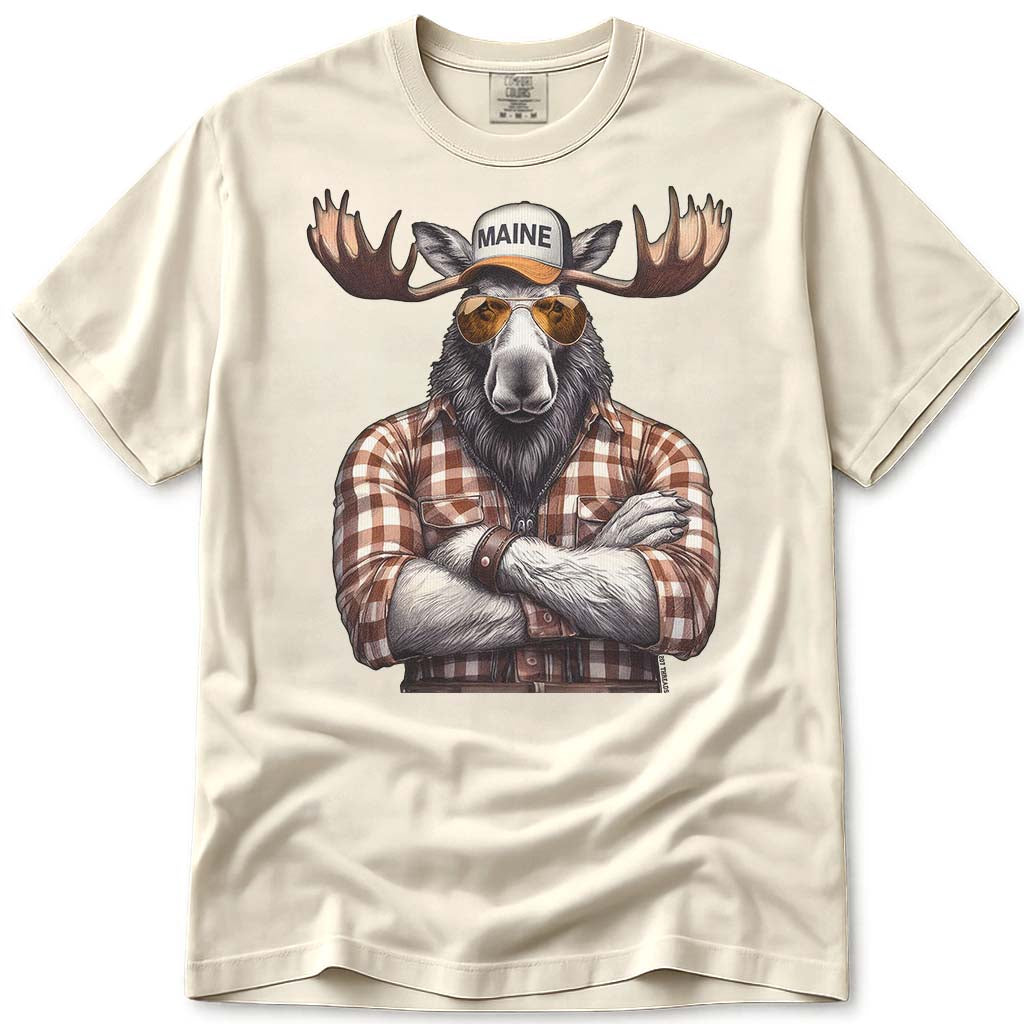 Printed on premium Comfort Colors cotton, this shirt feels as good as it looks. The garment-dyed fabric has that lived-in softness from day one, and the heavyweight construction means it holds up wash after wash. If you like what you see, check out our Hipster Moose design for another fun take, or grab our Guitar Moose tee to round out your moose lineup.